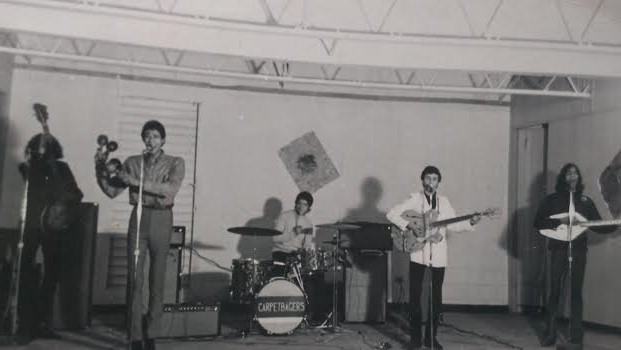 Watching the Carpetbaggers on stage was an adventure, sometimes you'd think they looked like a regular all rock band, and sometimes like a soul music band, then sometimes like a California folk rock band and others like a British band. And you were right on all of them, The Carpetbaggers very versatile in all styles!! They would play Four Tops with incredible vocals from Madamo, a very special humble person and great singer, later jump into a beautiful melody from The Byrds and finish up with a great rendition of Rolling Stones classics. They will get to you from all angles and once they started playing they're professionalism on stage kept you focused on them. Fonzy was a drummer to watch, complemented with British style outfits that made him the coolest dude on stage. Then if you look to the left of the stage you'd see Lito with his bass vertically inclined and playing it like there's no tomorrow. Anibal was very deep into his music on stage, he wanted everything solid and perfect note for note. No way you will hear the wrong note coming from his lead guitar, and Amilcar kept that Vox 12 string or the regular 6 string ringing like a bell. A complete band from Puerto Rico's heartland, Caguas. An unforgettable sound that will always live with us.