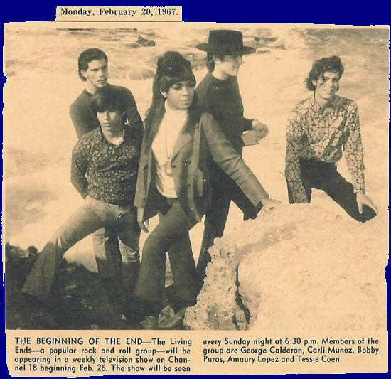 The Living End album "SPACE", 1967-68 Capitol Records Left to right: Amauri Lopez, Jorge Calderon, Tessy Coen, Carli Muñoz, Roberto Puras and Billie Soto |